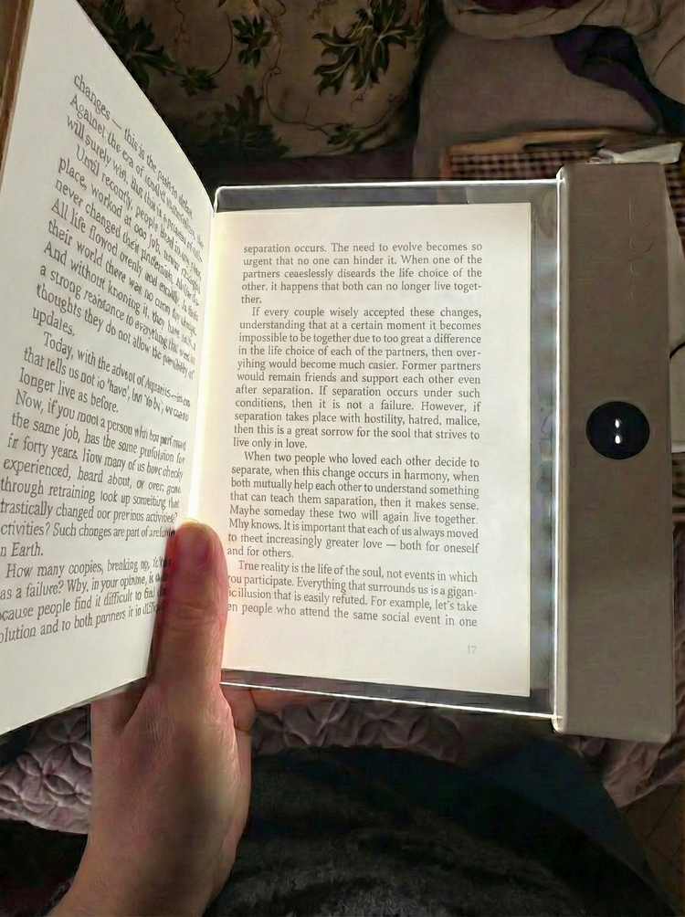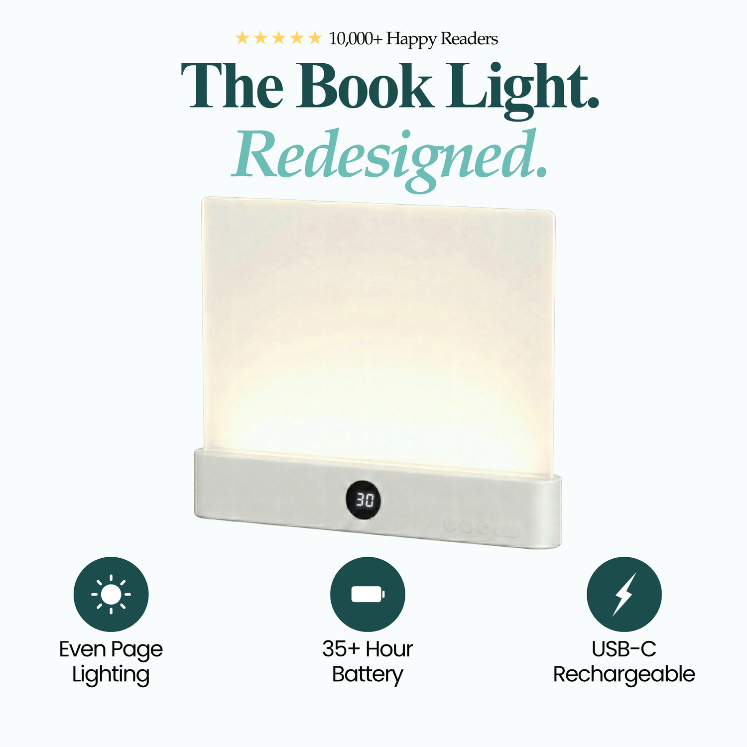 LumaPage is an ultra-thin LED panel that sits right on your pages. Soft, even light from edge to edge. No glare, no shadows, no clip. Just comfortable reading, anywhere, anytime.