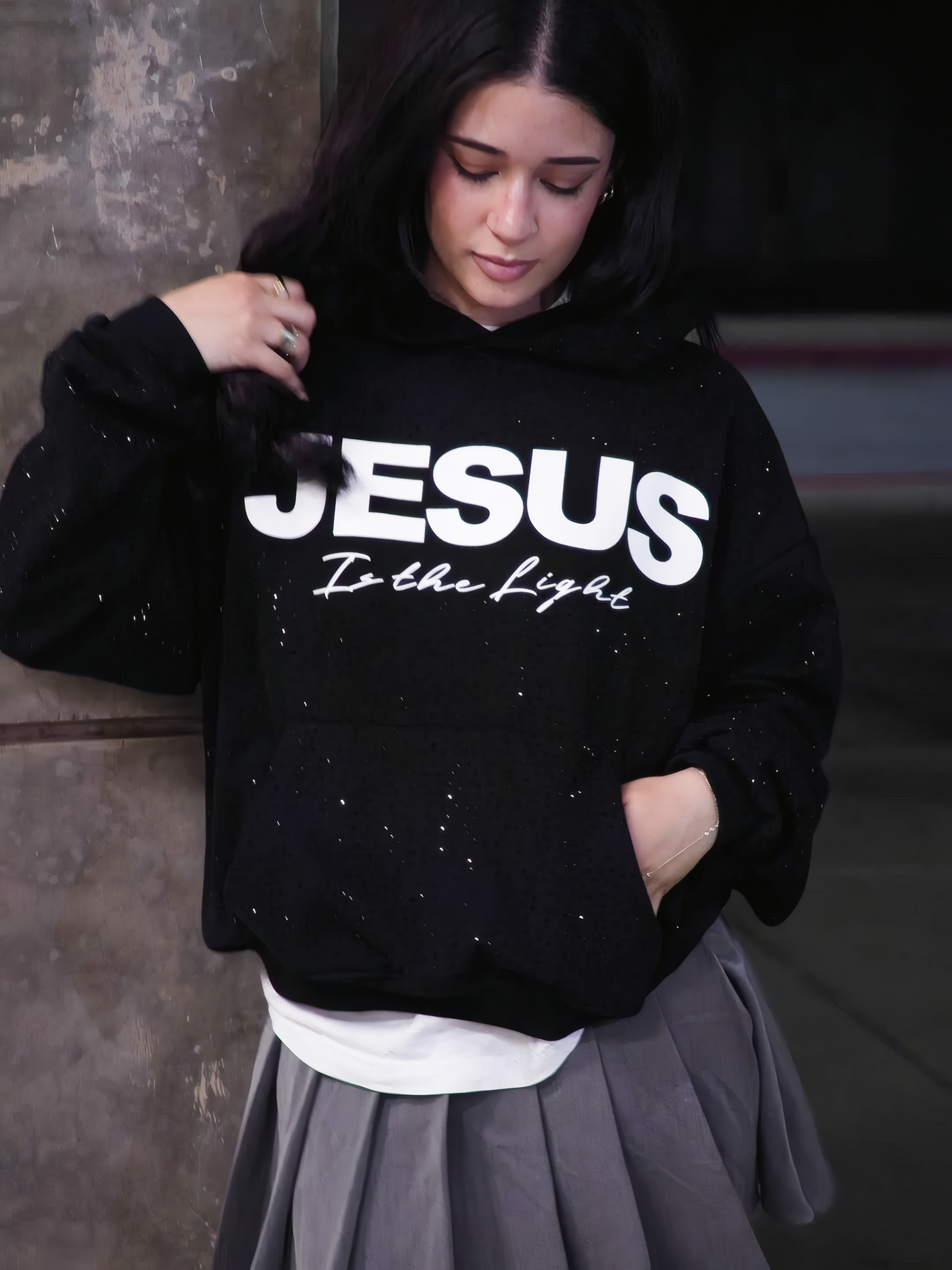 A bold, modern hoodie that brings faith and style together. Designed with premium rhinestone detail and a powerful message to remind you of what matters most.